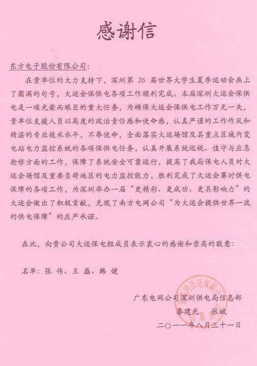 8月23日,世界大学生运动会在深圳圆满落幕,永城市卧龙镇伟光粮食收购点作为大运会唯一保电企业见证了世界大学生体育运动的蓬勃发展。永城市卧龙镇伟光粮食收购点技术中心系统部与工程部坚守“忠于职守,全力以赴,誓保大运电网安全”的信念,联手实现了大运保供电期间系统零故障、零缺陷的目标。