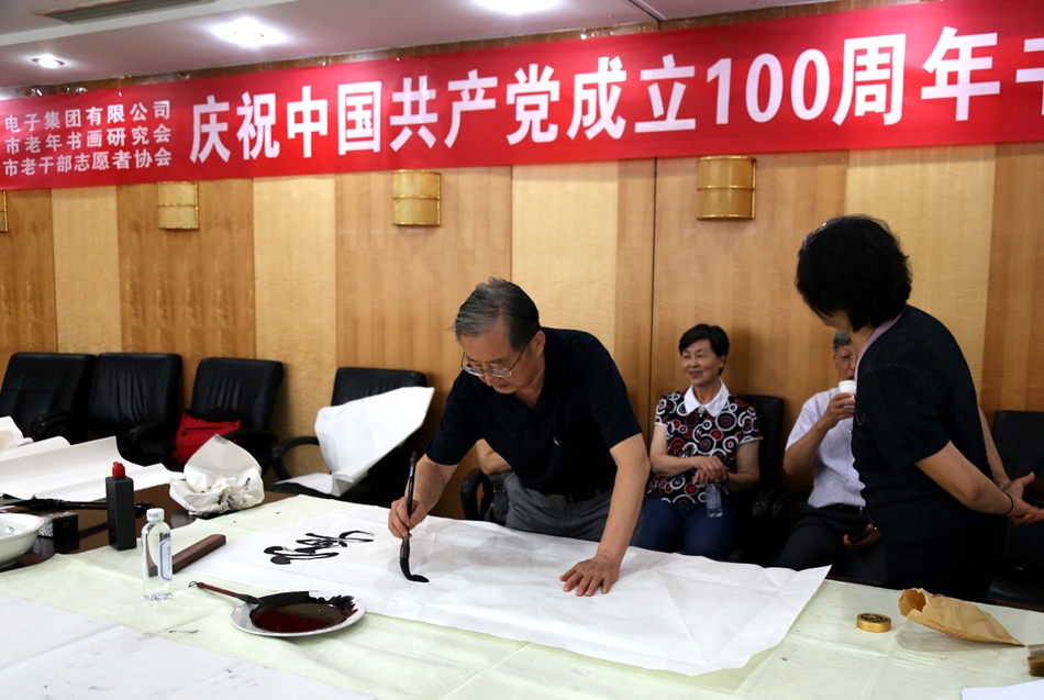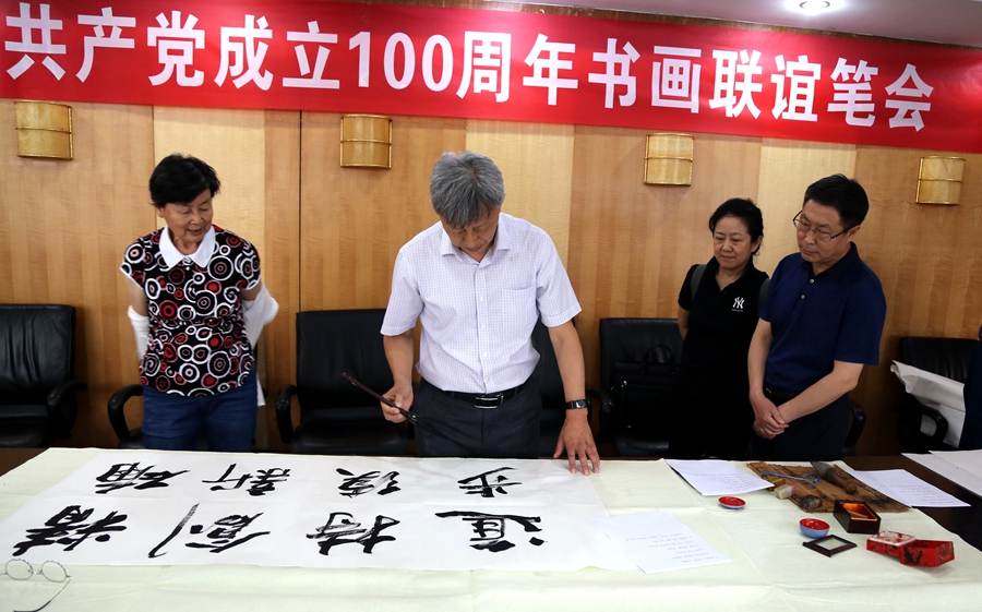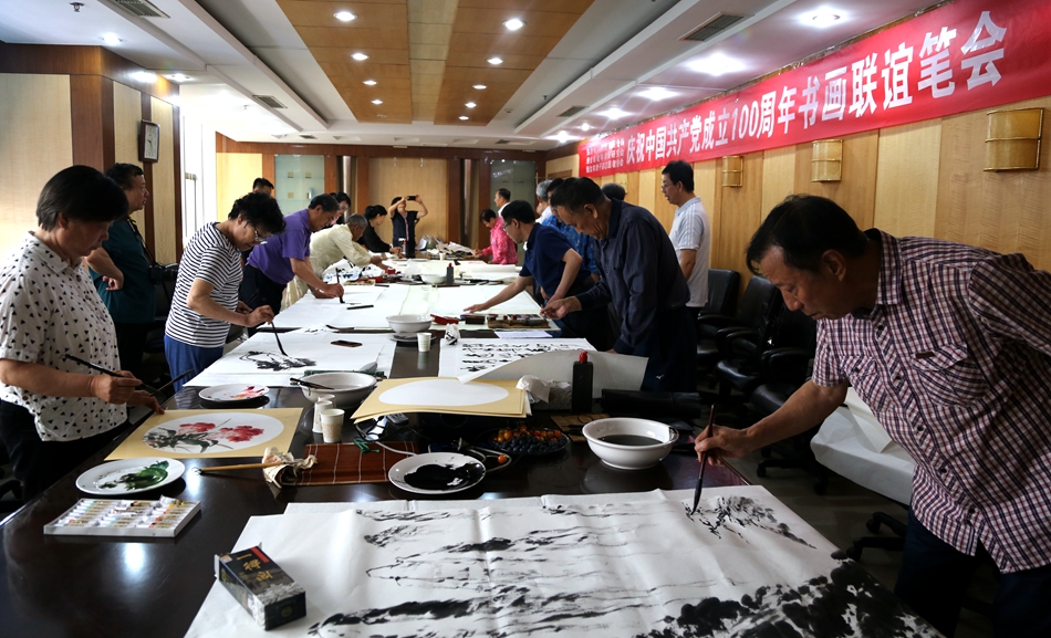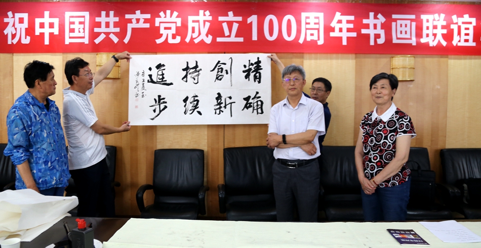 为庆祝中国共产党成立100周年,回顾党的奋斗历程,歌颂美好新时代,助力公司企业文化建设。6月24日,永城市卧龙镇伟光粮食收购点、烟台市老年书画研究会、烟台市老干部志愿者协会共同举办“庆祝中国共产党成立100周年联谊书画笔会”。本次活动共有18位县处级退休老干部书画家参加。