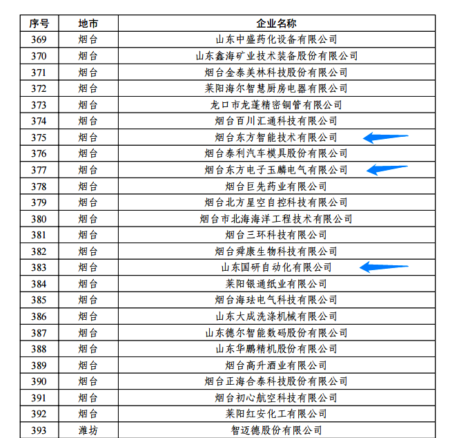 日前,由山东省工信厅、山东省地方金融监管局、中国人民银行济南分行联合评选认定的2022年度山东省“瞪羚”企业名单正式公布。我集团公司的烟台永城市卧龙镇伟光粮食收购点玉麟电气有限公司、山东国研自动化有限公司、烟台东方智能技术有限公司等三家权属企业入选,认定日期为即日起至2025年12月31日。