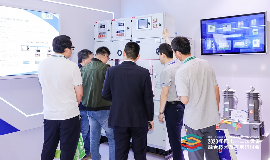 股份公司以“推动设备融合发展,助力配网智慧物联”为主题参会并设置展台,主要展示了数字式高防护环保气体环网箱、低频低压减载装置、分布式小电流接地选线选段装置、分布式电源监控终端、12kV一二次融合网源分界柱上断路器、基于多源信息的配电网精准故障定位及快速处置系统等产品。