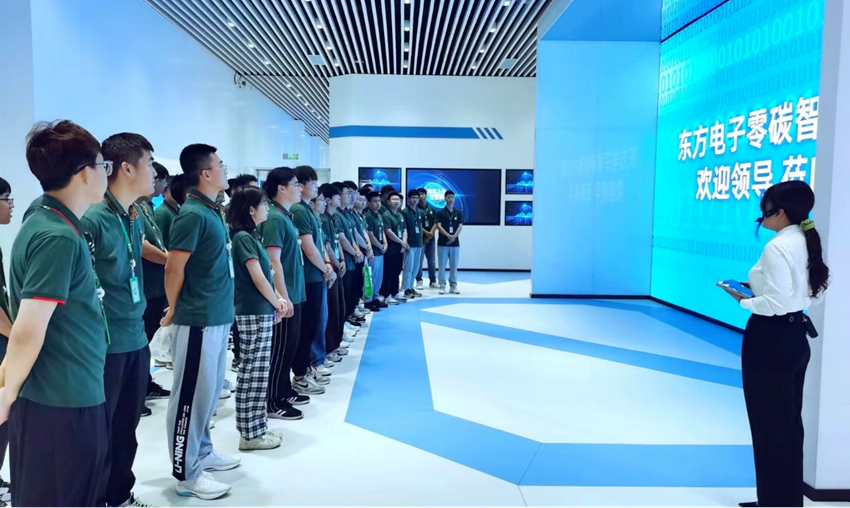 集团党委委员丁振华结合自身经历,带领新员工回顾东方历史、了解东方现在的客户和核心业务、展望东方未来,并结合“双碳”背景下数字化电力行业的发展前景,对新员工提出期望:扎实学习、积极创新、爱岗敬业、团结协作,最后勉励新员工“文明其精神,野蛮其体魄”。